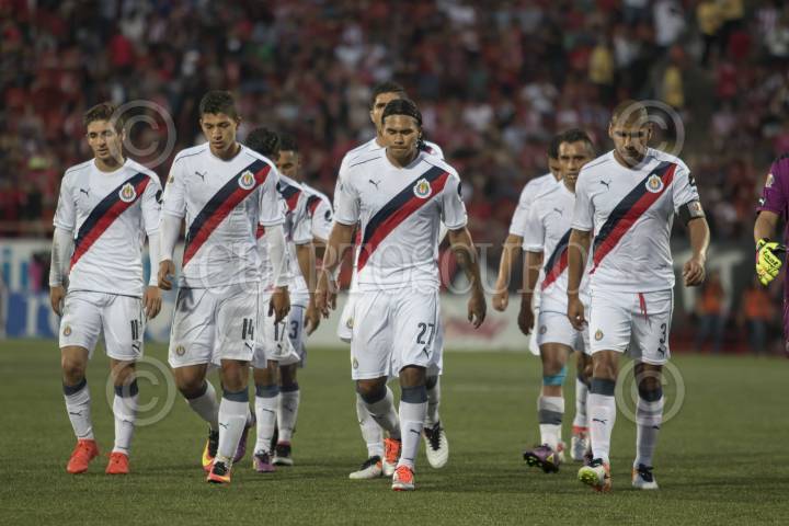 TIJUANA, BAJA CALIFORNIA, 30JULIO2016.- Váctor Malcorra (V) disputa la bola con Néstor Calderón durante el partido entre Xoloitzcuintles de Tijuana y Chivas de Guadalajara, realizado en el Estadio Caliente la noche de ayer, correspondiente tercera Jornada del torneo de Apertura 2016 de la Liga MX del fútbol mexicano. FOTO: CHRISTIAN SERNA /CUARTOSCURO.COM