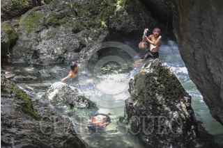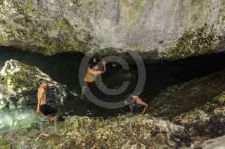 CANCÚN, QUINTANA ROO, 30JULIO2016.- Niños de escasos recursos se divierten y refrescan en un pequeño cenote ubicado en la colonia Avante en la periferia de Cancún. FOTO: ELIZABETH RUIZ /CUARTOSCURO.COM