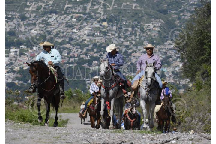 TIXTLA, GUERRERO, 30JULIO2016.- La diputada Erika Alcaraz Sosa, el alcalde Hossein Nabor y José Castro Justo en representación del gobernador Héctor Astudillo Flores dieron el banderazo de la salida de la cabalgata " De la liberta en honor al consumidor de la Independencia nacional" General Vicente Ramón Guerrero Saldaña, que inició en el crucero de la colonia Indeco de la ciudad y partió por la ruta que tomó el general en la batalla con dirección a Tixtla. En el lugar colocaron una ofrenda floral en la iglesia " Santuario de de la Virgen Natividad" y continúa la cabalgata hasta llegar al monumento del general Vicente Guerrero y colocan otra ofrenda. FOTO: JOSÉ I. HERNÁNDEZ /CUARTOSCURO.COM