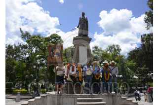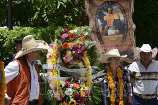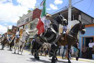 TIXTLA, GUERRERO, 30JULIO2016.- La diputada Erika Alcaraz Sosa, el alcalde Hossein Nabor y José Castro Justo en representación del gobernador Héctor Astudillo Flores dieron el banderazo de la salida de la cabalgata " De la liberta en honor al consumidor de la Independencia nacional" General Vicente Ramón Guerrero Saldaña, que inició en el crucero de la colonia Indeco de la ciudad y partió por la ruta que tomó el general en la batalla con dirección a Tixtla. En el lugar colocaron una ofrenda floral en la iglesia " Santuario de de la Virgen Natividad" y continúa la cabalgata hasta llegar al monumento del general Vicente Guerrero y colocan otra ofrenda. FOTO: JOSÉ I. HERNÁNDEZ /CUARTOSCURO.COM