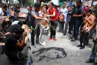 CIUDAD DE MÉXICO, 31JULIO2016.- Organizaciones de periodistas y de Derechos Humanos realizaron una manifestación frente a la vivienda 1909 de Luz Saviñon, en la colonia Narvarte, al cumplirse un año del multihomicidio en el cual fueron asesinados Rubén Espinoza, fotoperiodista colaborador de Cuartoscuro y la revista Proceso; Nadia Vera, activista de derechos humanos; Yesenia Quiroz; Mile Martí; Alejandra Negrete. FOTO: ADOLFO VLADIMIR /CUARTOSCURO