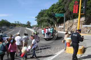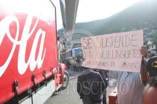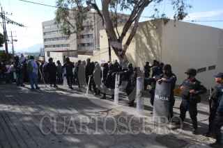 OAXACA, OAXACA, 01AGOSTO2016.- Profesores de la sección 22 de la Coordinadora Nacional de los Trabajadores de la Educación (CNTE) efectúan 3 bloqueos, como parte de los acuerdos de la asamblea estatal, misma que definió boicotear el festival de la Guelaguetza este lunes. Los profesores mantienen tomados los 3 accesos principales al Cerro del Fortín, en tanto policías estatales vigilan los cercos portando equipo anti motín. Asimismo, los uniformados transportan grupos de turistas, abordo de las camionetas de la corporación, hasta el auditorio. FOTO: ARTURO PÉREZ ALFONSO /CUARTOSCURO.COM