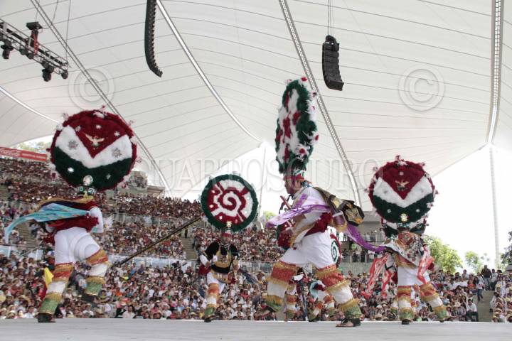 OAXACA, OAXACA., 01AGOSTO2016.- Este primer de agosto se llevó a cabo el segundo lunes del cerro en la ciudad de Oaxaca, donde danzantes de las ocho regiones mostraron parte de sus tradiciones como parte de las fiestas de la Guelaguetza. Pese al boicot realizado por parte de los profesores de la sección 22 de la CNTE, el auditorio lució a un 95 por ciento de su capacidad. FOTO: CAROLINA JIMÉNEZ /CUARTOSCURO.COM