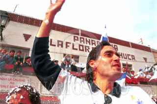 Walter Silvani durante su recorrido por la calle Guerrero de esta ciudad, donde festejaron la victoria obtenida por el centenario club en esta temporada. FOTO: Juan Pablo Zamora/CUARTOSCURO.COM