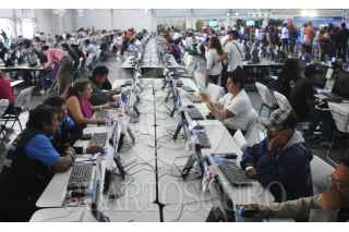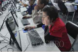 CIUDAD DE MÉXICO, 02AGOSTO2016.- Personas navegan en internet en las computadoras instaladas en la Aldea Digital del zócalo capitalino. FOTO: DIEGO SIMÓN SÁNCHEZ /CUARTOSCURO.COM