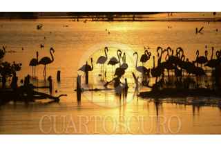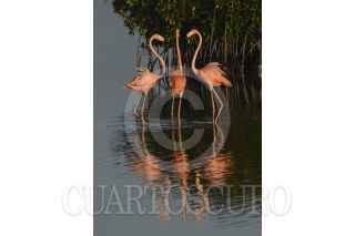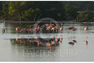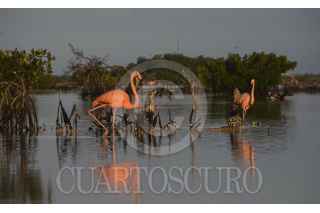 TELCHAC, YUCATÀN, 03AGOSTO2016.- Miles de flamingos se alimentan en la ría, una especie de brazo de mar que se encierra en la costa, lo que brinda un espectáculo de color rosa y dorado al amanecer. FOTO: ELIZABETH RUIZ /CUARTOSCURO.COM