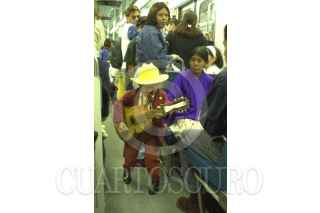 "Don Margarito" recorre vagón tras vagón para poder hacerse de su aguinaldo. FOTO: Christian Palma/CUARTOSCURO.COM