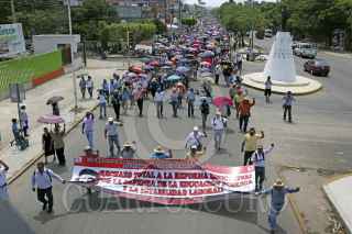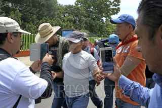 TUXTLA GUTIÉRREZ, CHIAPAS, 02AGOSTO2016.- Maestros pertenecientes a la Coordinadora Nacional de Trabajadores de la Educación (CNTE) detuvieron a dos presuntos "infiltrados" durante la mega marcha que realizaban en la ciudad. Los profesores continúan con su lucha por la abrogación de la Reforma Educativa. FOTO: JESÚS GARCÍA /CUARTOSCURO.COM