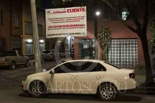 CIUDAD DE MÉXICO, 04AGOSTO2016.- Una manta del Consejo Ciudadano Ciudad de México advierte a los visitantes de la colonia Condesa que el valet parking está obligado a estacionar sus coches en un estacionamiento, y no en la calle como lo hacen comúnmente en esa zona. FOTO: MOISÉS PABLO /CUARTOSCURO.COM