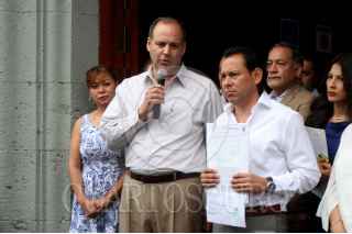 OAXACA, OAXACA., 05AGOSTO2016.- Empresarios oaxaqueños afiliados a la Coparmex y encabezados por su dirigente nacional, Gustavo de Hoyos Walther y el estatal, Benjamín Hernández Gutiérrez presentaron una demanda de amparo en contra de los actos de omisión de los tres ordenes de gobierno con respecto a las acciones que la Coordinadora Nacional de los Trabajadores de la Educación (CNTE) han realizado desde el 15 de mayo, lo que consideraron es una falta al estado de derecho ante lo cual las autoridades no han hecho nada para resolver la situación. FOTO: ARTURO PÉREZ ALFONSO /CUARTOSCURO.COM