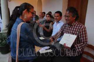 OAXACA, OAXACA., 05AGOSTO2016.- La noche de este viernes se realizó la premiación y la inauguración de la exposición fotográfica de la Bienal Fotográfica Oaxaca (2016) en el Centro Fotografía Manuel Álvarez Bravo. El ganador de la BFO fue el joven Aarón Cadena Ovalle con el trabajo "Black Bloc - Estética de la Violencia" el cual fue retratado en Brasil. Además recibieron mención honorífica Pedro Solano, Lucía Castañeda y Juan Cardona. El jurado estuvo representado por el director de la agencia Cuartoscuro, Pedro Valtierra. FOTO: ARTURO PÉREZ ALFONSO /CUARTOSCURO.COM