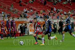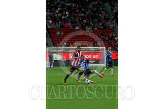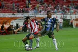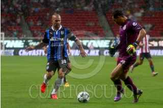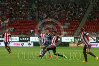 ZAPOPAN, JALISCO. 06AGOSTO2016.- Isaac Brizuela, jugador de Chivas disputa un balón a Luis Noriega de Querétaro en partido correspondiente a la Jornada 4 del Torneo Apertura 2016 de la Liga MX en donde se enfrentaron las Chivas de Guadalajara frente a los Gallos Blancos de Querétaro, en encuentro que se llevo a cabo en el Estadio Chivas. El marcador al final del juego fue de 0-0. FOTO : FERNANDO CARRANZA GARCIA / CUARTOSCURO.COM