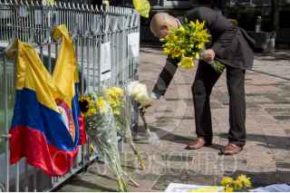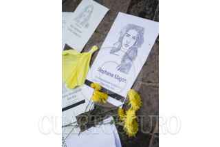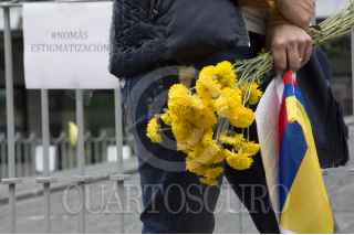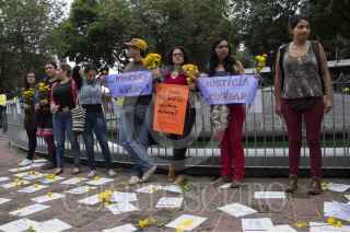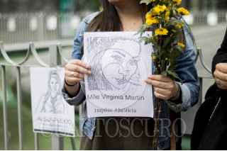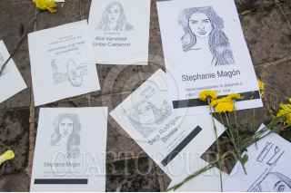 CIUDAD DE MÉXICO, 07AGOSTO2016.- Integrantes de la organización “Colombianas En México” se manifestaron en las inmediaciones de la fuente y estatua de Vicente Guerrero, ubicada en el Parque Hundido, para exigir justicia y una investigación contundente por la reciente muerte de la modelo Stephanie Magón, y las decenas de casos de desaparecidos y/o muertos procedentes de dicha nacionalidad. Las integrantes de la agrupación exigieron que no se estigmatice a la comunidad, ni se les relacione directamente con el tráfico de drogas. En la imagen la ilustración de Stephanie Magón, el caso más reciente. FOTO: GALO CAÑAS /CUARTOSCURO.COM