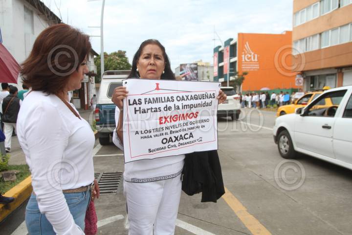 OAXACA, OAXACA., 08AGOSTO2016.- Comerciantes quienes forman parte de diversas cámaras empresariales y de trasporte como COPARMEX, Canirsc, Cmic, entre otras de carácter local realizaron este lunes un paro de labores para presionara a los tres ordenes de gobierno a restablecer el estado de derecho, el cual acusan ha sido violentado por parte de la sección 22 de la CNTE. Los manifestantes colocaron en el exterior de sus comercios algunas lonas en las que demandan paz para la entidad. Asimismo colocaron diversas pancartas en la Casa Oficial -hogar y oficina alterna del gobernador-, donde exigieron al mandatario, Gabino Cué la aplicación de la ley. Tras el retiro de los manifestante guardias del gobernador salieron del inmueble para retirar las cartulinas que minutos antes habían pegado los comerciantes. Ante la falta de camiones urbanos, personas comenzaron a transportar a las personas por la cantidad de 10 pesos, mientras que el costo del pasaje es de 7 pesos. FOTO: ARTURO PÉREZ ALFONSO /CUARTOSCURO.COM