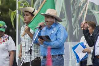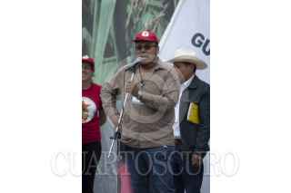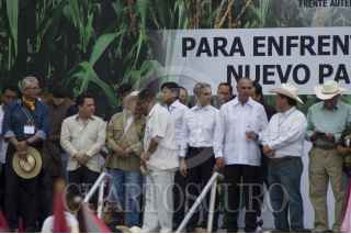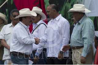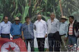 CIUDAD DE MÉXICO, 08AGOSTO2016.- Miguel Ángel Mancera, jefe de Gobierno de la Ciudad de México; José Calzada Rovirosa, titular de SAGARPA y Álvaro López, dirigente de la UNTA, durante el mitin realizado por parte del Frente Auténtico del Campo frente a Palacio Nacional. FOTO: GALO CAÑAS /CUARTOSCURO.COM