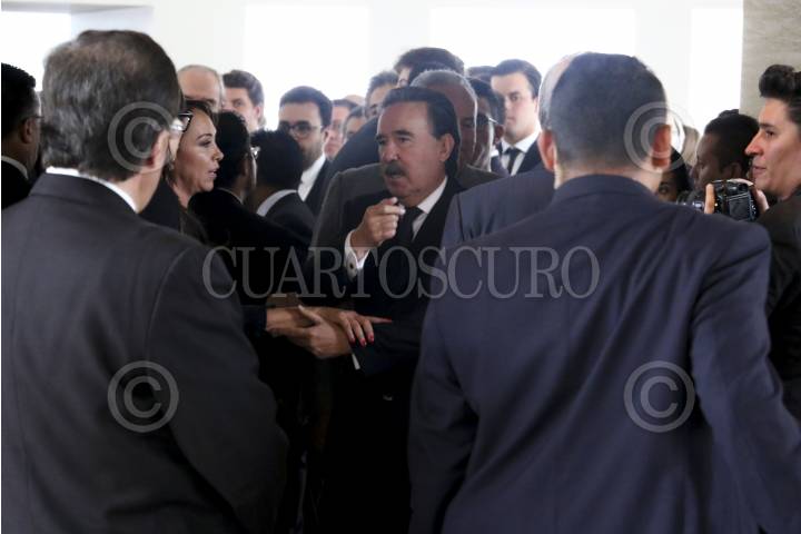 CIUDAD DE MÉXICO, 08AGOSTO2016.- El Presidente de México, Enrique Peña Nieto, y su esposa Angélica Rivera, acudieron a darle el pesame a Emilio Gamboa Patrón, coordinador de los senadores priistas, por la muerte de su esposa María Angélica Miner, quien fue velada en una funeraria de Santa Fe. FOTO: SAÚL LÓPEZ /CUARTOSCURO.COM