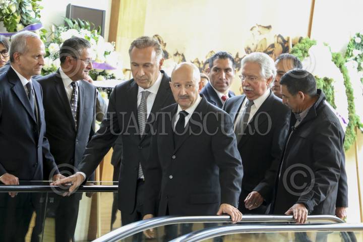 CIUDAD DE MÉXICO, 08AGOSTO2016.- El Presidente de México, Enrique Peña Nieto, y su esposa Angélica Rivera, acudieron a darle el pesame a Emilio Gamboa Patrón, coordinador de los senadores priistas, por la muerte de su esposa María Angélica Miner, quien fue velada en una funeraria de Santa Fe. FOTO: SAÚL LÓPEZ /CUARTOSCURO.COM