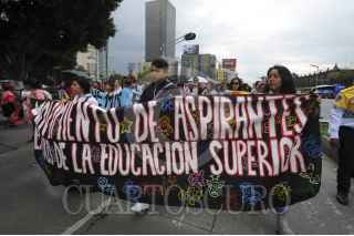 CIUDAD DE MÉXICO, 08AGOSTO2016.- Jóvenes pertenecientes del Movimiento de Aspirantes Excluidos de la Educación Superior (MAES) marcharon rumbo a la Secretaría de Educación Pública, para exigir los que es su derechos, estudiar. FOTO: ARMANDO MONROY /CUARTOSCURO.COM