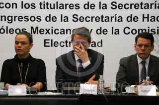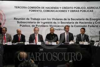 CIUDAD DE MÉXICO, 09AGOSTO2016.- José Antonio González Anaya, titular de Petróleos Mexicanos (PEMEX), y Pedro Joaquín Coldwell, secretario de Energía, durante la comparecencia de la tercera Comisión de Hacienda y Crédito Público, Agricultura y Fomento, y Comunicaciones y Obras Públicas del Senado de la República, durante la comparecencia ante la Comisión Permanente para explicar los incrementos a la gasolina y tarifas eléctricas. FOTO: SAÚL LÓPEZ /CUARTOSCURO.COM