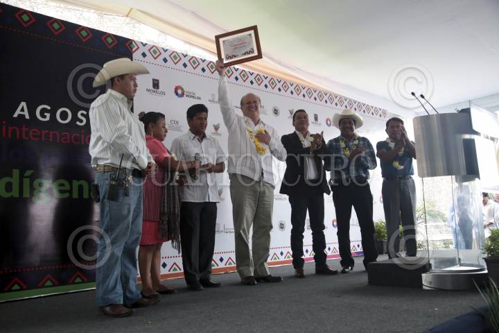 CUERNAVACA, MORELOS, 09AGOSTO2016.- Decenas de habitantes de pueblos indígenas se dieron cita en la explanada del Palacio de Cortes para vender sus productos y realizar algunas danzas como son “los Moros” de Hueyapan y “los Tecuanes” de Tepalcingo, en el marco de la celebración del Día Internacional de los Pueblos Indígenas. FOTO: MARGARITO PÉREZ RETANA /CUARTOSCURO.COM