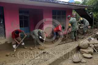 XALTEPEC, PUEBLA, 09AGOSTO2016.- Elementos del ejército, protección civil y bomberos laboran en apoyo a la población afectada por el paso de la tormenta tropical Earl, en donde una avalancha de lodo sepultó varios hogares en la pequeña comunidad de Xaltepec. FOTO: HILDA RÍOS /CUARTOSCURO.COM