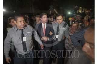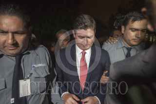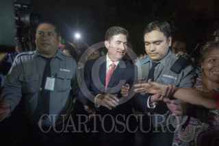MONTERREY, NUEVO LEÓN, 09AGOSTO2016.- El ex gobernador del estado de Nuevo León, Rodrigo Medina, al salir de la audiencia, luego de 13 horas donde fue vinculado a proceso por solo un delito de los tres que se le pretendía imputar. FOTO: MANUELA GARCÍA / CUARTOSCURO.COM