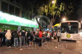 CIUDAD DE MÉXICO., 10AGOSTO2016.- Algunos campamentos de campesinos, provenientes de diversas partes de la república que se encontraban en plantón sobre avenida Bucareli, se retiraron con destino a sus lugares de origen, luego de algunas pláticas con personal de Gobernación. Alrededor de las 02:00 AM comenzaron a levantar sus pertenencias para abordar los autobuses que los regresarían a sus estados. FOTO: LUIS CARBAYO /CUARTOSCURO.COM