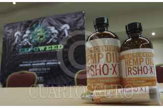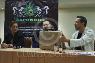 CIUDAD DE MÉXICO, 10AGOSTO2016.- Julio Zeni, coeditor de la revista Cañamo, Leopoldo Rivera, organizador de la ExpoWeed México, Martha Tagle, senadora de la república, Raúl Elizalde, de la FUndación por Grace y Dion Markgraaff, director en México de General Hemp, durante la conferencia de presentación de la ExpoWeed, Feria Internacional del Cannabis que se realizará por primera vez en el país. A partir del 12 de agosto y por 3 días, más de 30 expositores de diversos artículos derivados del cannabis y una veintena de especialistas internacionales, quienes hablarán de las últimas investigaciones científicas en torno a la misma. L a expo se realizará 12, 13 y 14 de agosto de 10 a 21 hrs en el WTC. En la imagen, medicamento a base de marihuana. FOTO: ADOLFO VLADIMIR /CUARTOSCURO.COM