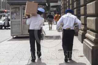CIUDAD DE MÉXICO, 10AGOSTO2016.- Policías llevan sus raciones de alimentos, mejor conocidos como la "choclaya". Los elementos caminan por la calle de 5 de Mayo y forman parte de la seguridad del Centro Histórico. FOTO: MOISÉS PABLO /CUARTOSCURO.COM