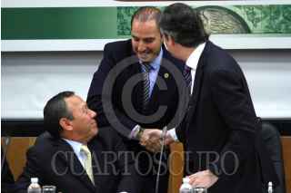 CIUDAD DE MÉXICO, 11AGOSTO2016.- Jesús Zambrano, presidente de la Mesa Directiva de la Cámara de Diputados y Aurelio Nuño Mayer, secretario de Educación Pública, Hortensia Aragón, diputada por el PRD y presidenta de la Comisión de Educación Pública y Servicios Educativos, durante la reunión informativa en la Cámara de Diputados, para presentar el "Modelo Educativo y la Propuesta Curricular para la Educación Obligatoria 2016" propuesta por la SEP. FOTO: ADOLFO VLADIMIR / CUARTOSCURO.COM