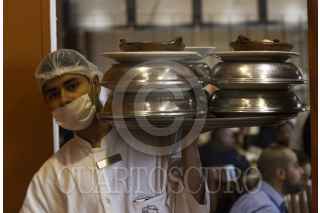 CIUDAD DE MÉXICO, 11AGOSTO2016.- Mesero carga charolas de comida en el restaurante El Cardenal, en el Centro Histórico. El investigador Roberto Gutiérrez Rodríguez de la Universidad Autónoma Metropolitana señalo que México es el país que tiene el nivel de salario mínimo más bajo de América Latina. FOTO: MOISÉS PABLO /CUARTOSCURO.COM