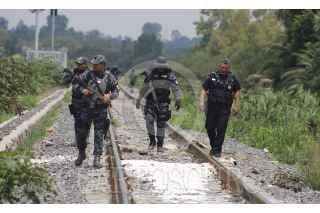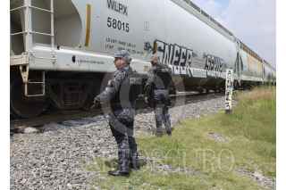 LEÓN, GUANAJUATO, 11AGOSTO2016.- Elementos de la Gendarmería Nacional custodian desde ayer las vías del tren en las comunidades cercanas a la empresa de Maseca, donde los últimos días hubo robos al cargamento de maíz. FOTO: LUIS RAMÍREZ /CUARTOSCURO.COM