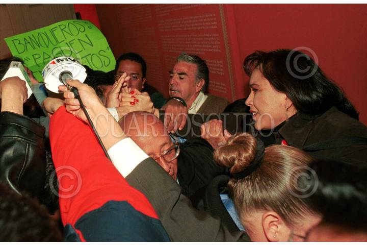 Entre empujones deudores de la banca ingresaron al Palacio de Iturbide donde exigieron que se les resolviera su problema de cartera vencida. FOTO:Christian Palma/CUARTOSCURO.COM