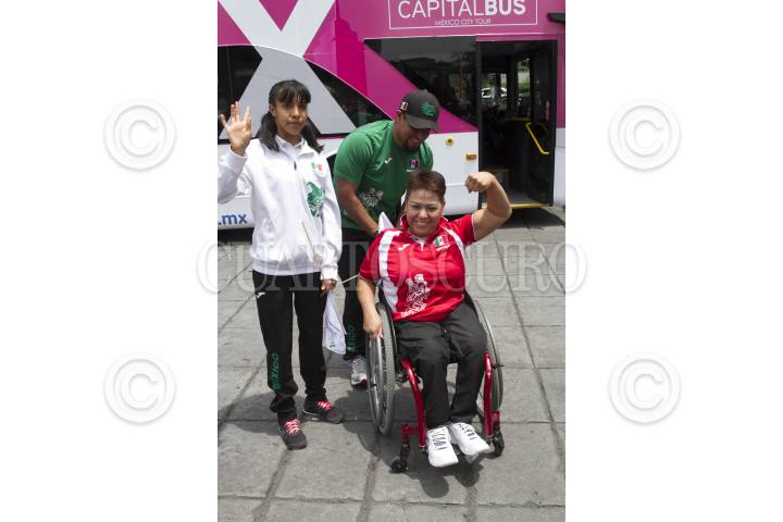 CIUDAD DE MÉXICO, 14AGOSTO2016.- María Guadalupe Gaytán Ochoa, Directora de Deporte Adaptado del DIF Nacional; Víctor Gabriel Espejo Martínez, director del Comité Olímpico Mexicano; el lanzador de disco Ricardo Robles, y la nadadora Patricia Valle, durante la toma de fotografía oficial de la delegación mexicana que participará en los Juegos Paralímpicos Río 2016, en el mes de septiembre. FOTO: MOISÉS PABLO /CUARTOSCURO.COM