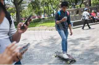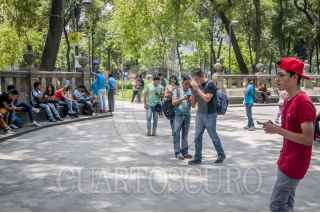 CIUDAD DE MÉXICO, 15AGOSTO2016.- Decenas de jóvenes continuan visitando la Alameda Central para jugar con la aplicación virtual ¨Pokémon Go¨. El juego ha causado furor en las últimas semanas, pues los jugadores pasan horas "cazando" a los personajes de la serie japonesa que van encontrando a su paso. FOTO: DIEGO SIMÓN SÁNCHEZ /CUARTOSCURO.COM