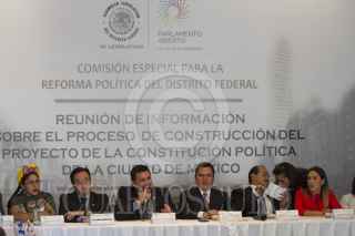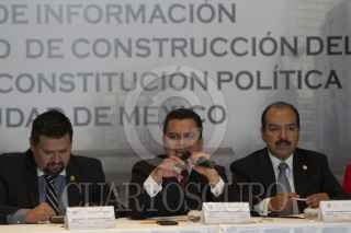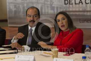 CIUDAD DE MÉXICO, 15AGOSTO2016.- Encarnación Alfaro Cázares, presidente de la comisión especial para la Reforma Política de la Ciudad de México, y la diputada priista Mariana Moguel Robles, durante la reunión informativa sobre el proceso de construcción de la Constitución Polítca de la Ciudad de México, en el ex templo de Corpus Chriti. FOTO: MOISÉS PABLO /CUARTOSCURO.COM