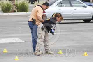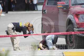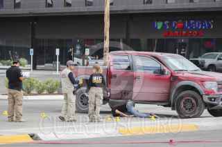 CIUDAD JUÁREZ, CHIHUAHUA, 15AGOSTO2016.- Un hombre fue asesinado y otro resultó herido al ser atacados cuando viajaban en una camioneta Raptor con placas texanas GXX 4511 sobre el cruce de avenida Tecnológico y calle Chichimecas. Los atacantes huyeron del lugar, sin que las autoridades pudieran impedir la agresión ni detener a los homicidas. La persona asesinada fue identificada como Rafael, de 26 años de edad, quien cayó del asiento del copiloto de la pick up al asfalto. El conductor también fue impactado por las balas y fue trasladado de inmediato para su hospitalización. FOTO: NACHO RUIZ /CUARTOSCURO.COM