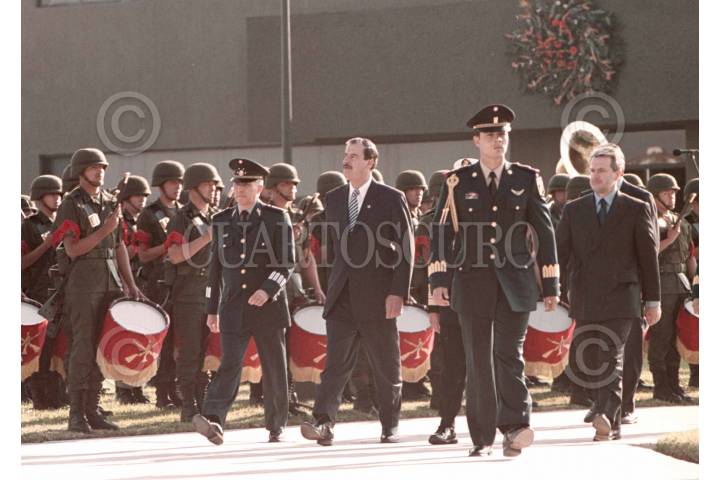 El presidente Vicente Fox, saluda a Ricardo Gerardo Clemente Vega García, secretario de la Defensa durante la ceremonia del Día del Ejército FOTO: Oswaldo Ramírez/CUARTOSCURO.COM