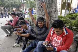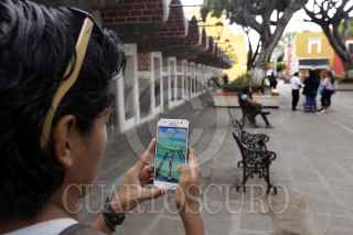 PUEBLA, PUEBLA, 16AGOSTO2016.- Decenas de jóvenes continúan recorriendo las calles del centro histórico de la ciudad así como el zócalo y catedral para jugar con la aplicación virtual ¨Pokémon Go¨, mismo que ha causado sensación entre millones de jóvenes mexicanos desde su lanzamiento mundial el pasado 06 de julio. FOTO: HILDA RÍOS /CUARTOSCURO.COM