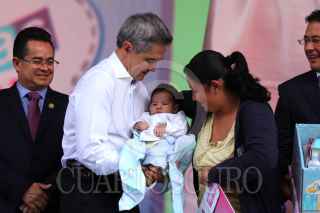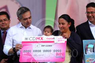 CIUDAD DE MÉXICO, 16AGOSTO2016.- Miguel Ángel Mancera, jefe de gobierno de la Ciudad de México presidió la entrega de Cunas CDMX, realizado en la plancha de Zócalo capitalino. El gobierno capitalino informó que entregó 2,500 cunas de cartón, tomadas del modelo finlandés y cada una contiene 25 artículos avalados por la Unicef, entre los cuales hay un colchón, cojín antirreflujo, un juego de sábanas, una cobija, dos mamelucos de cero a tres meses, un aspirador nasal, una pañalera, vaselina, un minipeine, toallas húmedas y un paquete de pañales desechables. FOTO: ADOLFO VLADIMIR / CUARTOSCURO.COM