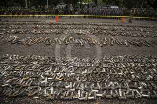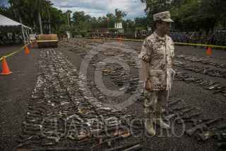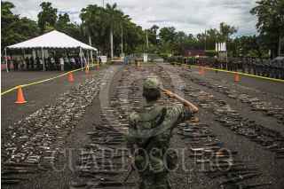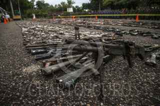 CULIACÁN, SINALOA, 16AGOSTO2016.- Como parte de las acciones realizadas por el Gobierno Federal a fin de lograr un ¨México en Paz¨ se llevo acabo la destrucción de armamento y municiones decomisados por la Secretaría de Defensa Nacional en la explanada del 94/o batallón de infantería. Un total de 19 mil 640 armas a nivel nacional serán destruidas de las cuales 5 mil 204 pertenecen a la Novena Zona Militar. El evento fue encabezado por el Gobernador Mario López Valdez y altos mandos militares. FOTO: RASHIDE FRIAS /CUARTOSCURO.COM