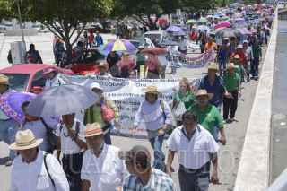 CHILPANCINGO,GUERRERO.18AGOSTO2016.- Integrantes del Sindicato Único de Trabajadores del Colegio de Bachilleres (Sutcobach), encabezados por el secretario General Alfredo Ramírez García, marcharon de la alameda Granados Maldonado a las oficinas centrales del Cobach, y posteriormente al Palacio de Gobierno, para exigir el pago de prestaciones y salarios a trabajadores administrativos, interinos, maestros, jubilados y pensionados. FOTO: JOSÉ I. HERNÁNDEZ /CUARTOSCURO.COM