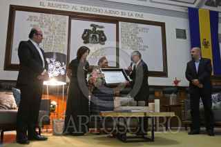 GUADALAJARA, JALISCO, 18AGOSTO2016.- Rigoberta Menchú Tum premio nobel de la Paz en 1992, fue reconocida esta tarde por el Gobierno de Guadalajara, debido a su labor por construir una cultura por la paz, el respeto de los pueblos indígenas y la equidad de genero. Dicho acto se llevo a cabo en el cabildo de sesiones de la Presidencia Municipal, fue encabezado por el Secretario General del Ayuntamiento, Enrique Ibarra Pedroza y la Presidenta del Sistema Municipal DIF Guadalajara, Lorena Martínez Ramírez. FOTO : FERNANDO CARRANZA GARCIA / CUARTOSCURO.COM