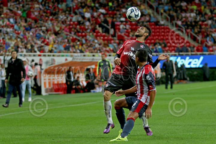 ZAPOPAN, JALISCO, 20AGOSTO2016. Flavio Santos jugador de Atlas, celebra su anotación, durante el juego correspondiente a la Jornada 6 del Torneo Apertura 2016 de la Liga MX, en donde se enfrentan las Chivas de Guadalajara y los Zorros del Atlas, en juego que se lleva a cabo en el estadio Chivas.El marcador al final del encuentro fue de 2-2. FOTO : FERNANDO CARRANZA GARCIA / CUARTOSCURO.COM