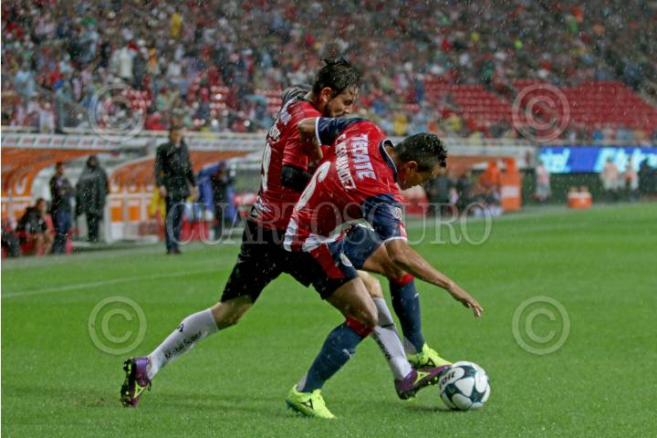 ZAPOPAN, JALISCO, 20AGOSTO2016. Flavio Santos jugador de Atlas, celebra su anotación, durante el juego correspondiente a la Jornada 6 del Torneo Apertura 2016 de la Liga MX, en donde se enfrentan las Chivas de Guadalajara y los Zorros del Atlas, en juego que se lleva a cabo en el estadio Chivas.El marcador al final del encuentro fue de 2-2. FOTO : FERNANDO CARRANZA GARCIA / CUARTOSCURO.COM