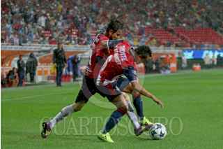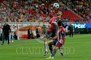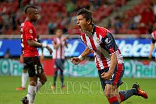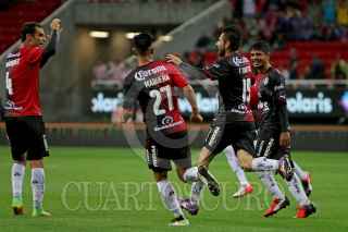ZAPOPAN, JALISCO, 20AGOSTO2016. Flavio Santos jugador de Atlas, celebra su anotación, durante el juego correspondiente a la Jornada 6 del Torneo Apertura 2016 de la Liga MX, en donde se enfrentan las Chivas de Guadalajara y los Zorros del Atlas, en juego que se lleva a cabo en el estadio Chivas.El marcador al final del encuentro fue de 2-2. FOTO : FERNANDO CARRANZA GARCIA / CUARTOSCURO.COM