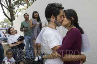 CIUDAD DE MÉXICO, 21AGOSTO2016.- Parejas oriundas de la delegación Azcapotzalco participaron en el concurso “El Beso Más Largo”, organizado por dicha demarcación, con motivo del centésimo aniversario de la compositora Consuelito Velázquez. El jefe delegacional Pablo Moctezuma dio inicio al concurso e inauguró el “Callejón del Beso”. FOTO: GALO CAÑAS /CUARTOSCURO.COM