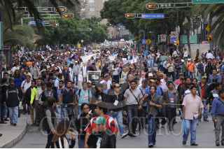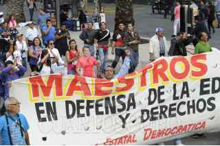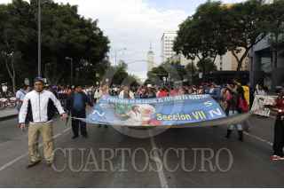 CIUDAD DE MÉXICO, 22AGOSTO2016.- Integrantes de la Coordinadora Nacional de Trabajadores de la Educación (CNTE) marcharon del Zócalo de la Ciudad de México al cruce de las avenidas Juárez y Bucareli, al lugar conocido como el "Antimonumento", para exigir al gobierno federal la abrogación de la reforma educativa. FOTO: SAÚL LÓPEZ /CUARTOSCURO.COM