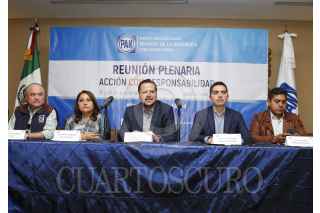 SALTILLO, COAHUILA, 24AGOSTO2016.- Los senadores Ernesto Ruffo Appel, Silvia Guadalupe Garza Galván, Fernando Herrera, Luis Fernando Salazar Hernández y Jorge Luis Preciado Rodríguez, ofrecieron una conferencia de prensa previó a la realización de su reunión plenaria. FOTO: CUARTOSCURO.COM
