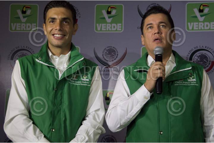 CIUDAD DE MÉXICO, 24AGOSTO2016.- Jesús Sesma Suárez, coordinador parlamentario del Partido Verde Ecologista de México (PVEM) en la Cámara de Diputados, saludó a Miguel Ángel Osorio Chong, secretario de Gobernación, durante los trabajos de la Reunión Plenaria de dicho partido. A sus espaldas, Carlos Puente Salas, coordinador parlamentario del PVEM en el Senado. FOTO: GALO CAÑAS /CUARTOSCURO.COM